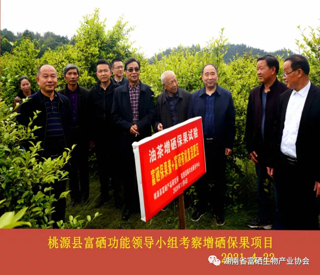 2021.6.17, 湖南省農(nóng)業(yè)農(nóng)村廳原副巡視員、聯(lián)合國計(jì)劃署專家黃永明參觀時(shí)指出:“油茶增硒保果”示范樣板,是桃源縣的樣板,也是全省的典范,標(biāo)桿。希望桃源縣委縣政府把抓“油茶增硒保果”,像抓富硒工程一樣抓好抓落實(shí);湖南省農(nóng)技協(xié)富硒產(chǎn)業(yè)專委會(huì)主任、我會(huì)副會(huì)長單位——湖南省富硒生物產(chǎn)業(yè)協(xié)會(huì)理事長楊俊,在發(fā)言時(shí)語重心長強(qiáng)調(diào):夷望溪鎮(zhèn)開展的“油茶增硒保果”示范是油茶生產(chǎn)上的創(chuàng)新,是一項(xiàng)居全省先進(jìn)水平的高科技成果;桃源縣四級(jí)調(diào)研員,縣林業(yè)局黨組書記、局長鄭朝新指出:油茶是桃源的主導(dǎo)產(chǎn)業(yè),桃源縣富硒產(chǎn)品研究所研究的“油茶增硒保果豐產(chǎn)栽培技術(shù)”初見成效。試驗(yàn)區(qū)比對(duì)照區(qū)果多、果大、青枝綠葉樹勢旺。從這里我們看到了桃源縣油茶產(chǎn)業(yè)富硒、增產(chǎn)、提質(zhì)的希望。我希望夷望溪鎮(zhèn)拿出一個(gè)樣板,為明年全縣推廣提供科學(xué)依據(jù)。