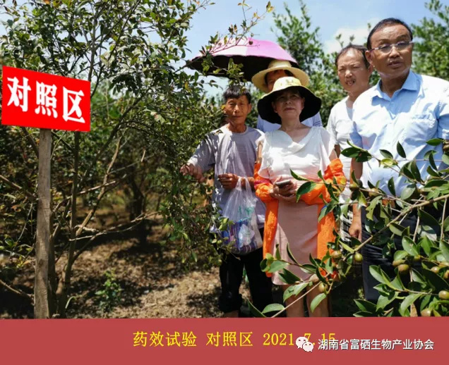 本項(xiàng)目實(shí)施油茶園,每株施用1kg富硒生物有機(jī)復(fù)混肥+噴施增硒保果豐產(chǎn)素。從現(xiàn)場(chǎng)觀察比較:試驗(yàn)區(qū)枝葉茂密,葉色青綠、茶果繁多;對(duì)照區(qū)長(zhǎng)勢(shì)不旺,枝葉稀疏,葉片明顯黃綠,茶果數(shù)量偏少。從單株觀察,試驗(yàn)株果密、果多、果大、大小均勻、崎型果少。對(duì)照株茶果稀疏、果小。試驗(yàn)區(qū)與對(duì)照區(qū)差異顯著。油茶種植大戶徐清桃說(shuō):“施了增硒保果肥的,結(jié)得太好了,你看這個(gè)茶子,枝都快壓斷了,怎么得了,真是結(jié)得太好了”。